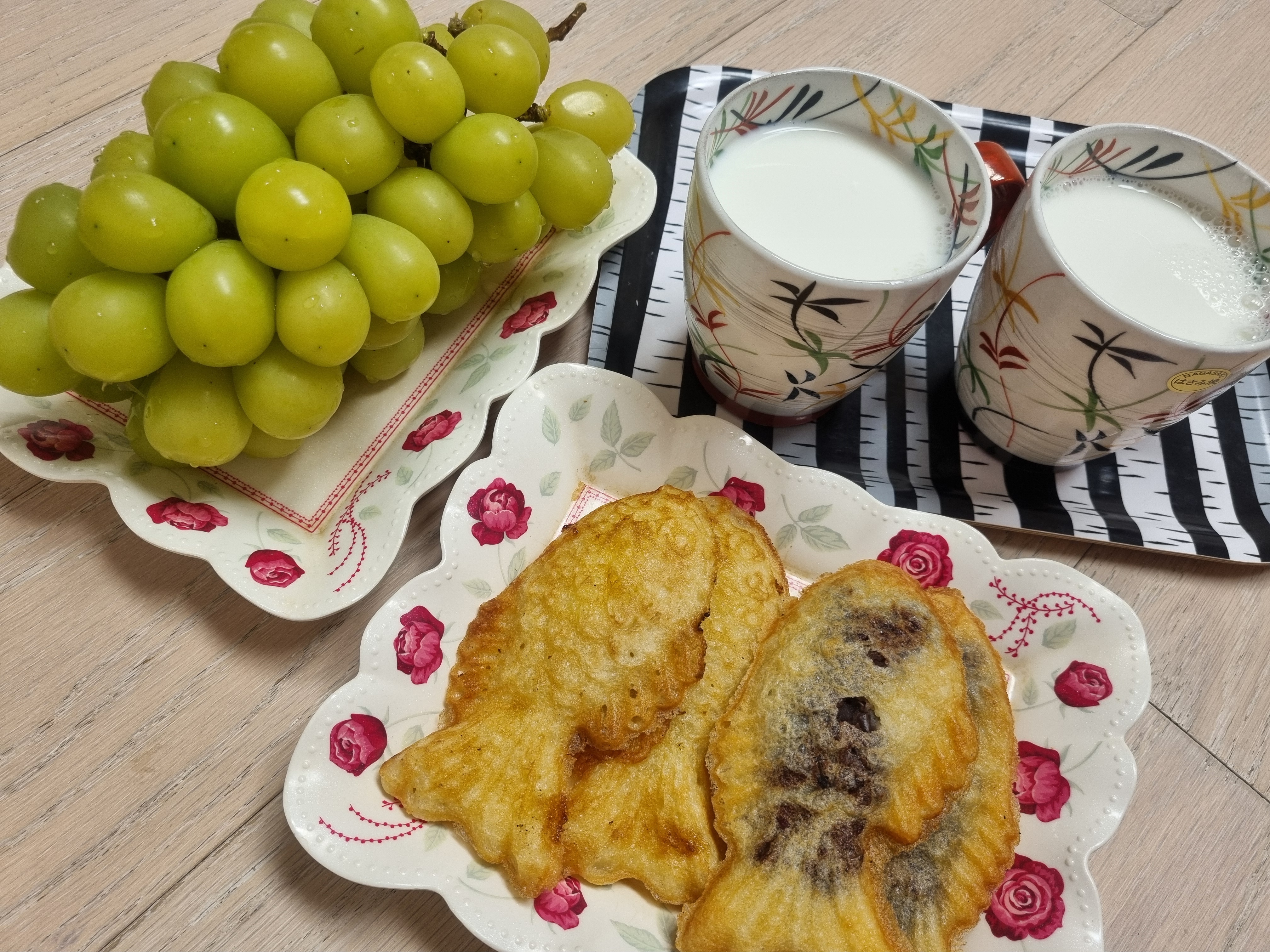 소문난 붕어빵 6개, 샤인머스캣 반송이, 우유 머그잔으로 가득~