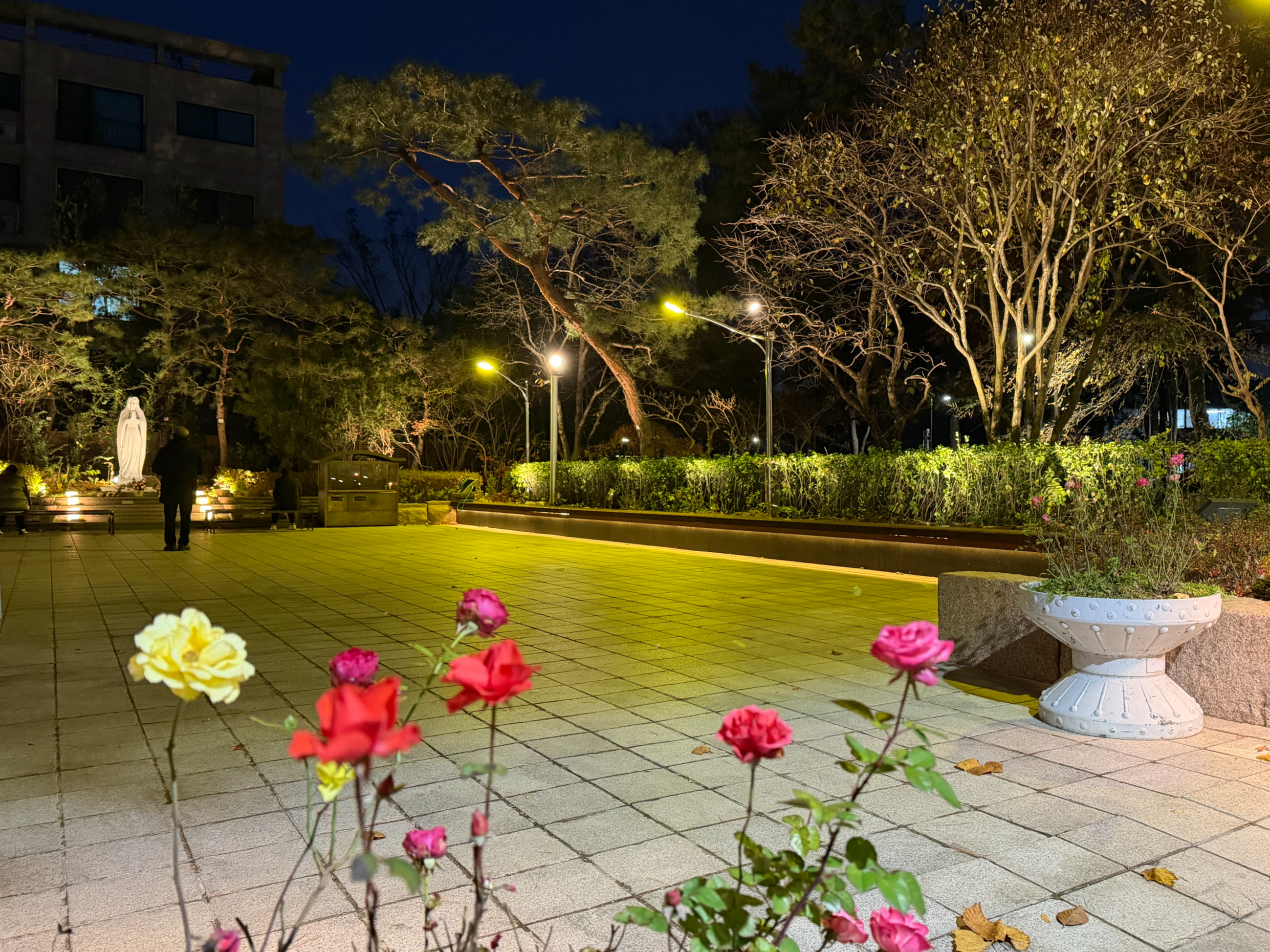 성당 앞마당에 피어있는 겨울장미가 어찌나 예쁘게 피어있는지