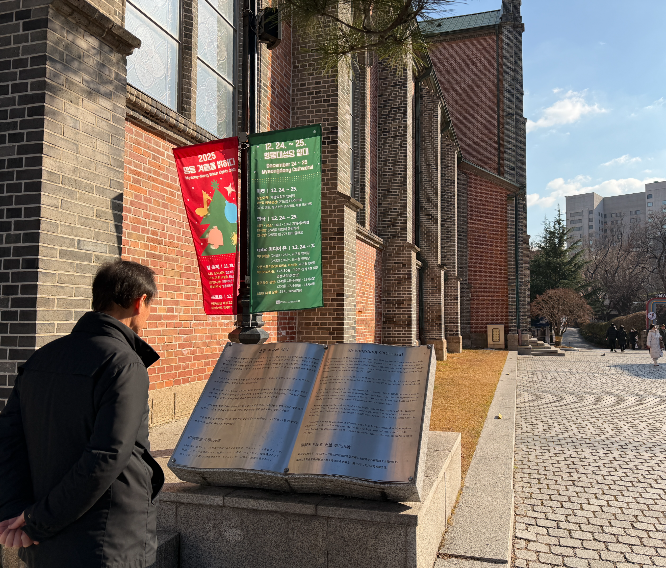 명동성당을 관심 있게 둘러보고 있다